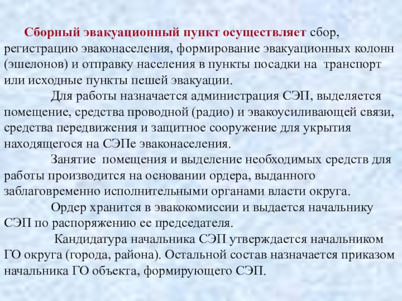 сборные эвакуационные пункты (СЭП) - городские и объектовые