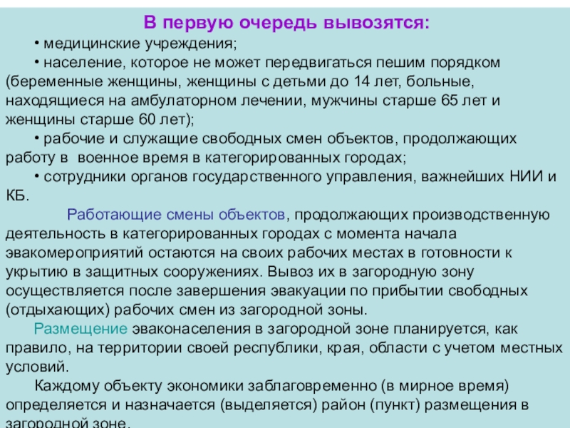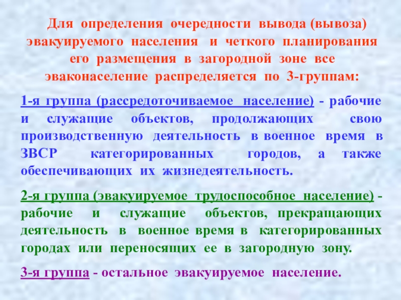 РАССРЕДОТОЧЕНИЕ - это комплекс мероприятий по организованному вывозу (выводу) из категорированных городов и размещение в загородной зоне для проживания и отдыха рабочих и служащих объектов экономики, производственная деятельность которых в военное время будет продолжаться в этих городах.