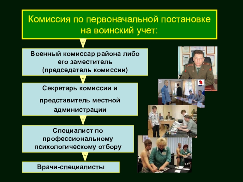 Слайд 14Комиссия по первоначальной постановке на воинский учет: