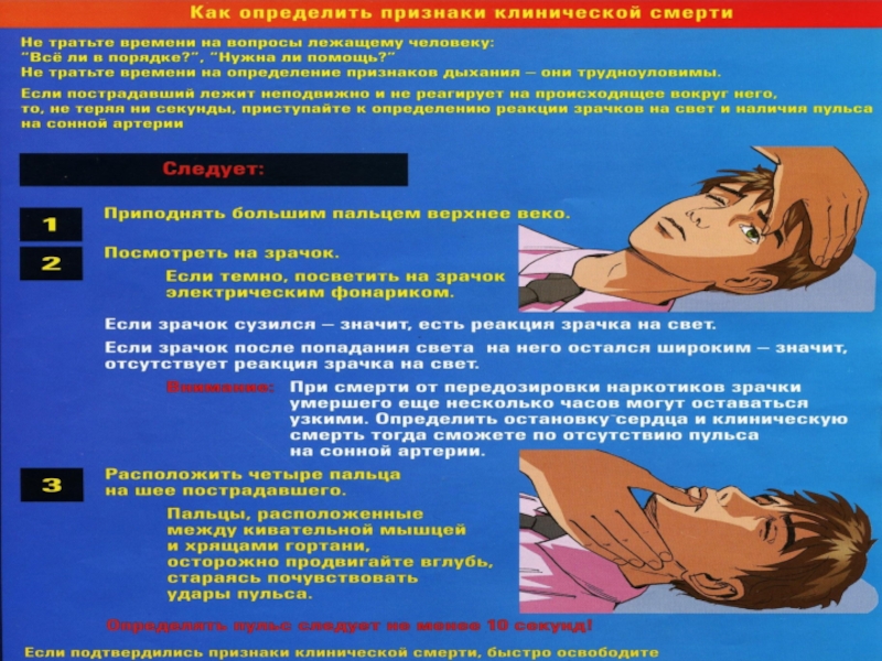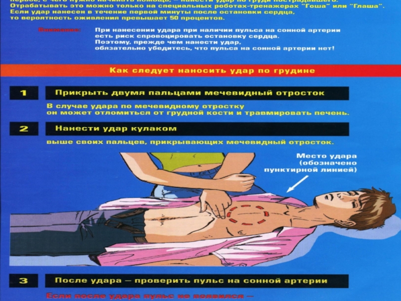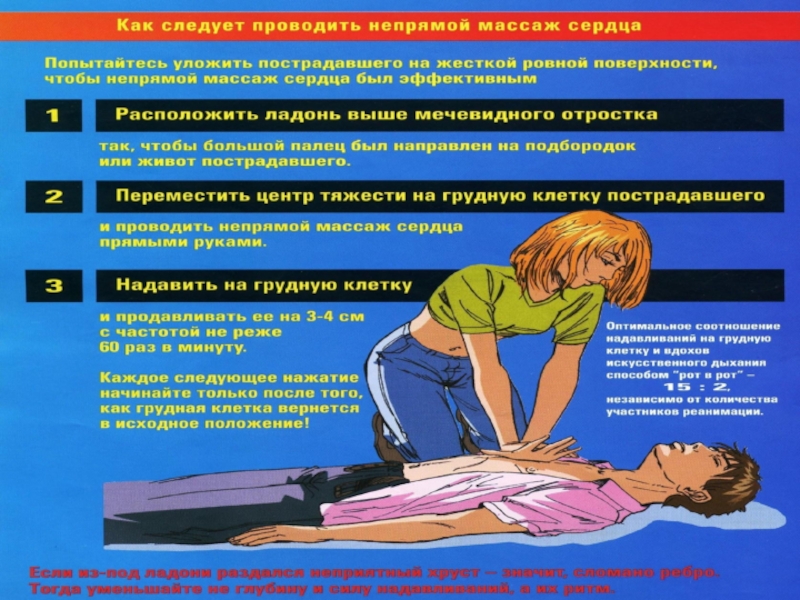 * провести восстановление проходимости дыхательных путей, искусственную вентиляцию лёгких, непрямой массаж сердца;