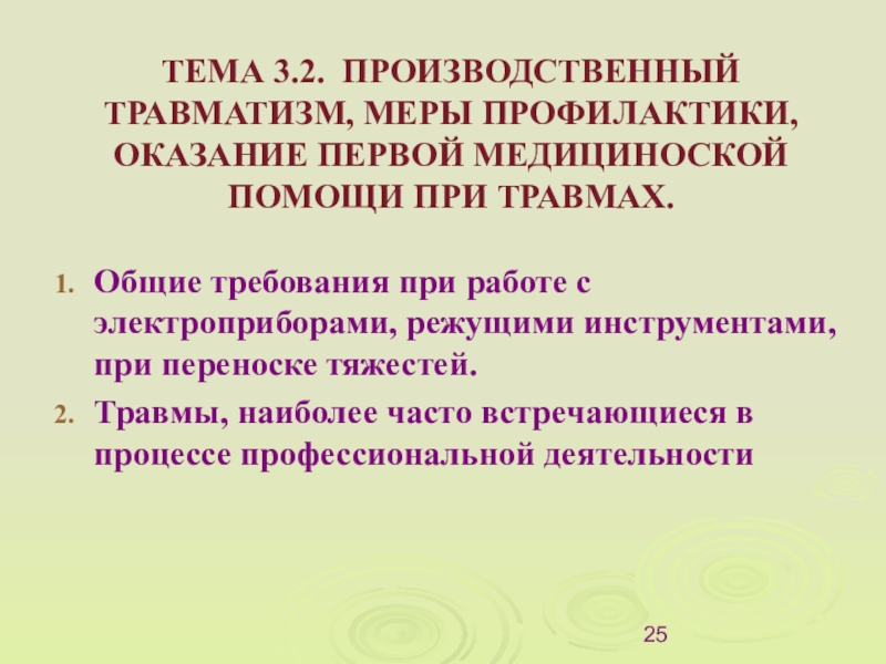 ТЕМА 3.2. ПРОИЗВОДСТВЕННЫЙ ТРАВМАТИЗМ, МЕРЫ ПРОФИЛАКТИКИ, ОКАЗАНИЕ ПЕРВОЙ МЕДИЦИНОСКОЙ ПОМОЩИ ПРИ