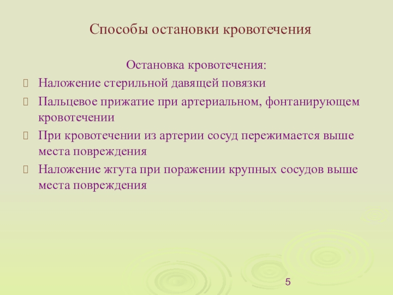 Кровотечения, их виды. Способы остановки кровотечений. Правила наложения кровоостанавливающего жгута