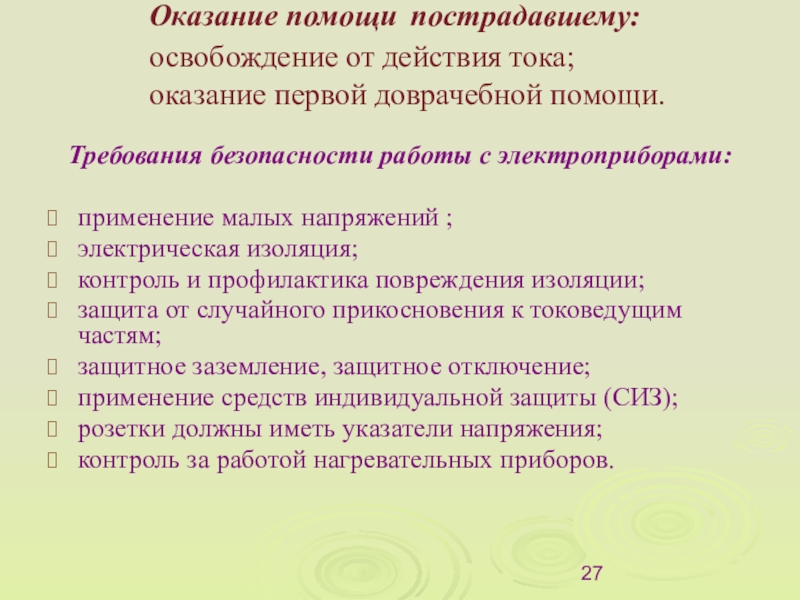 Действие электрического тока на человека приводит к травмам или гибели людей.