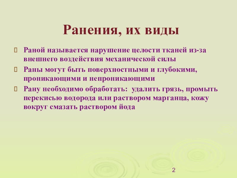 Раной называется нарушение целости тканей из-за внешнего воздействия механической
