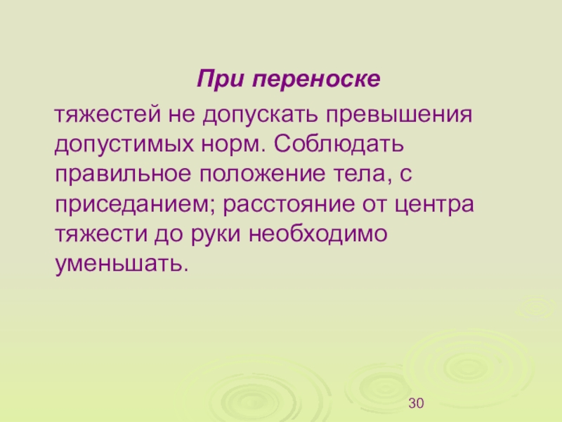 Соблюдать правильное положение тела, с приседанием; расстояние от центра тяжести до руки необходимо уменьшать.