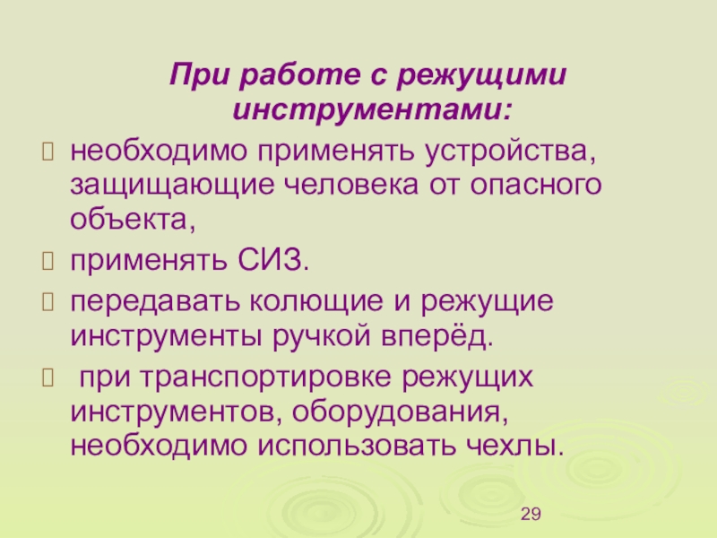 Общие требования при работе с электроприборами, режущими инструментами, при переноске тяжестей.
