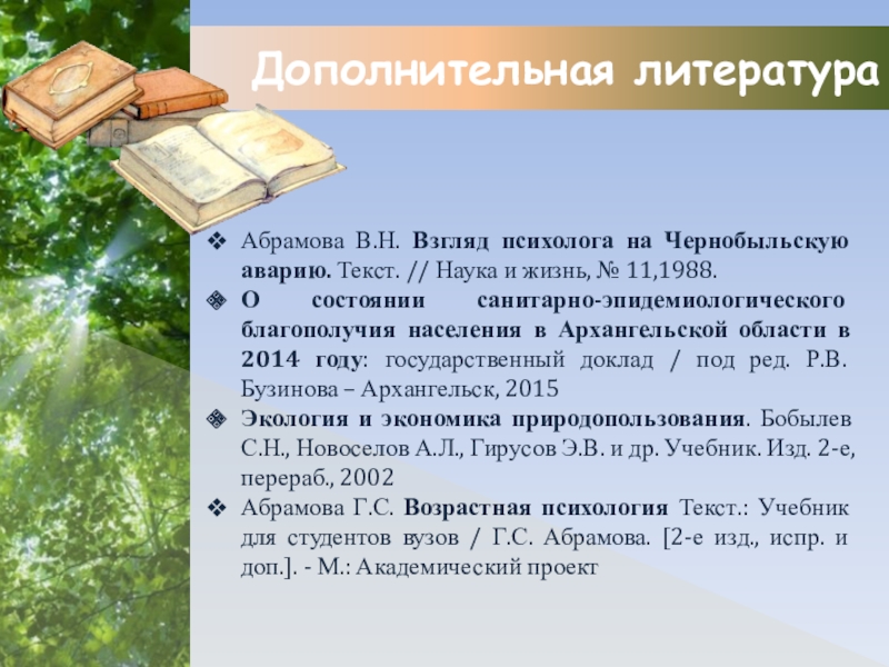 Абрамова Г.С. Возрастная психология Текст.: Учебник для студентов вузов / Г.С. Абрамова. [2-е изд., испр. и доп.]. - М.: Академический проект