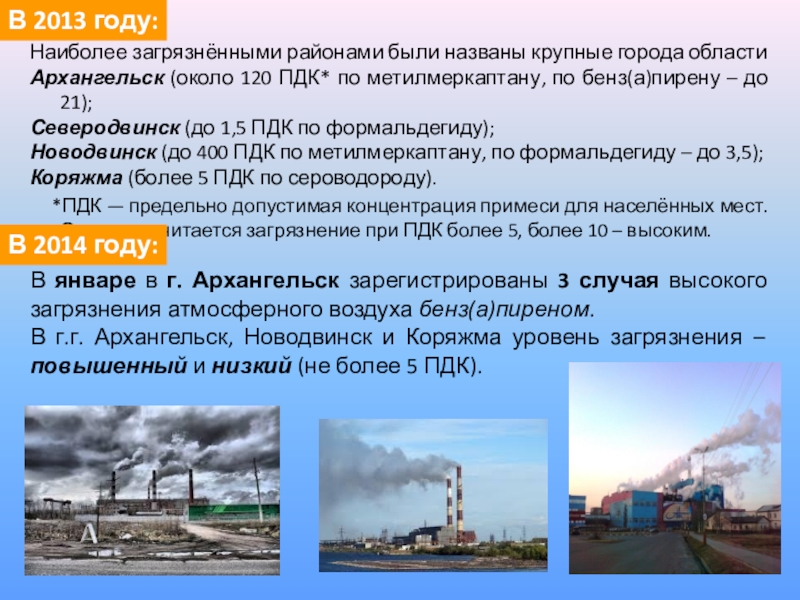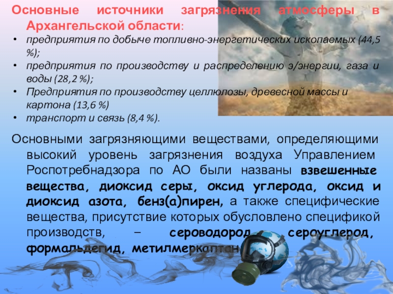 Слайд 15Основные источники загрязнения атмосферы в Архангельской области: