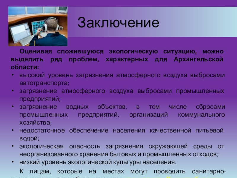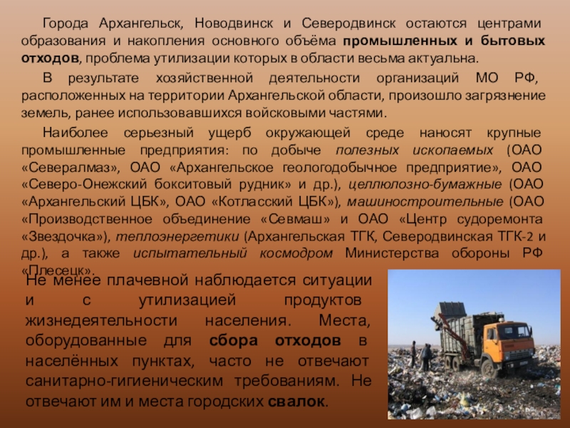 Оценивая сложившуюся экологическую ситуацию, можно выделить ряд проблем, характерных для Архангельской