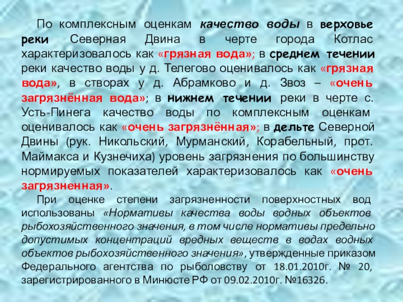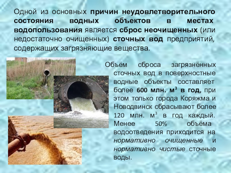 загрязнение водных объектов, в том числе сбросами промышленных предприятий, организаций коммунального хозяйства;