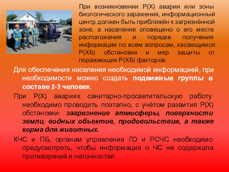 Слайд 48При возникновении Р(Х) аварии или зоны биологического заражения, информационный центр должен