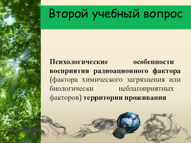 восприятия радиоационного фактора (фактора химического загрязнения или биологически неблагоприятных факторов) территории проживания.