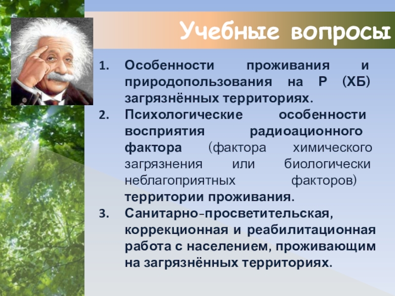 Особенности проживания и природопользования на радиоактивно (химически, биологически) загрязнённых