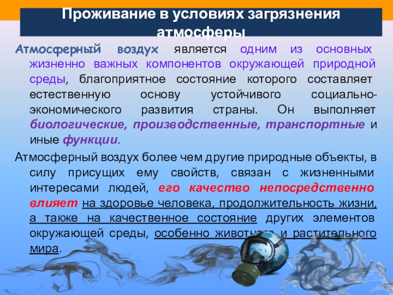 Слайд 14Атмосферный воздух является одним из основных жизненно важных компонентов окружающей природной