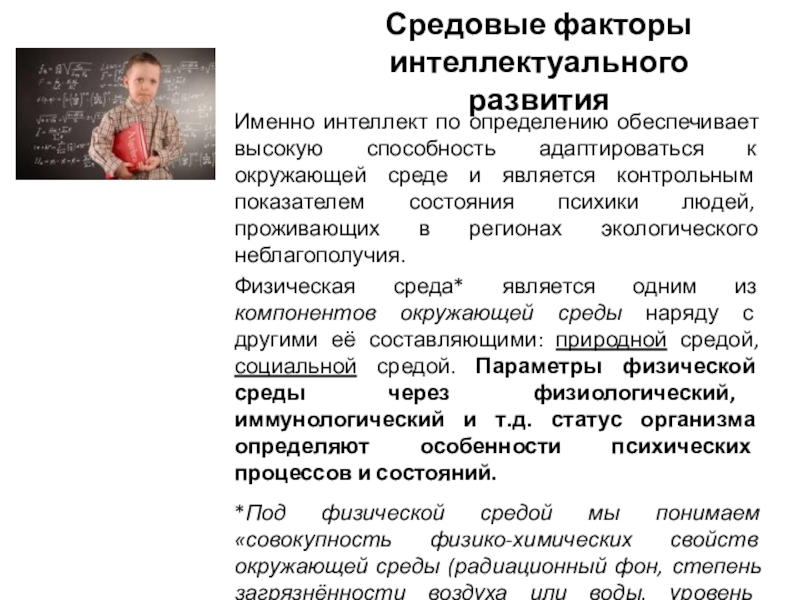 Неблагоприятная физическая среда является фактором риска для интеллектуального развития человека.