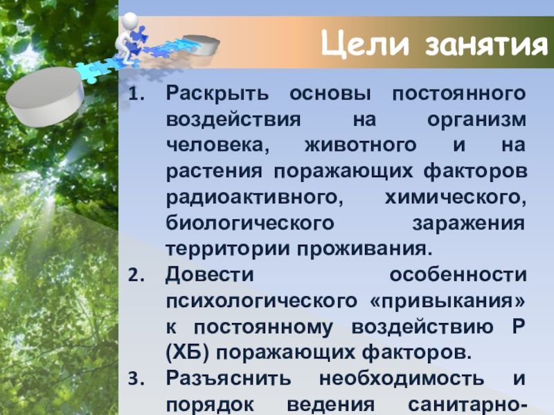Довести особенности психологического «привыкания» к постоянному воздействию Р (ХБ) поражающих факторов.