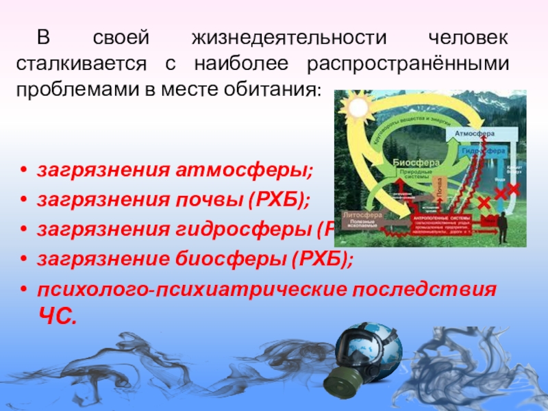 Слайд 13В своей жизнедеятельности человек сталкивается с наиболее распространёнными проблемами в месте