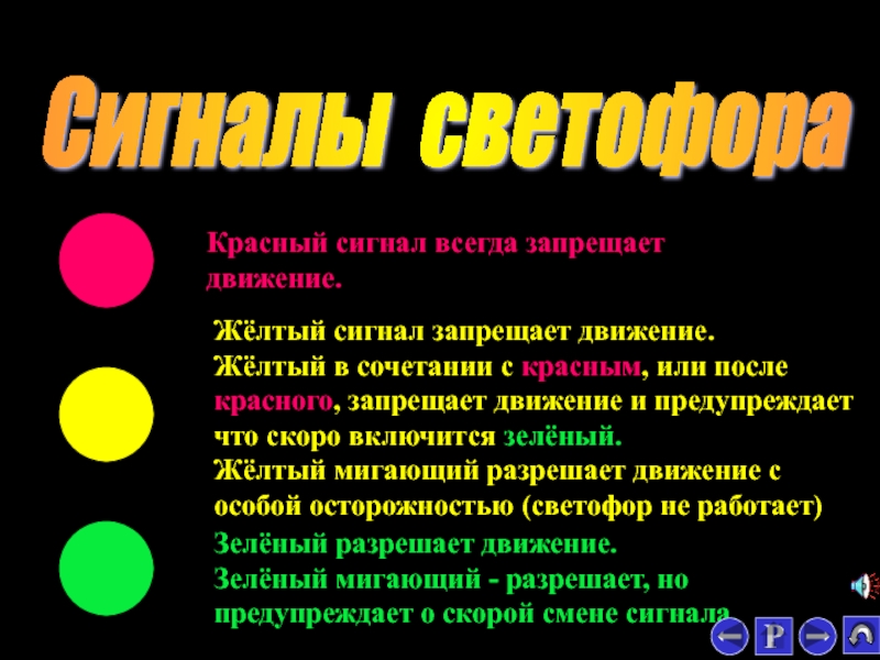 Зелёный мигающий - разрешает, но предупреждает о скорой смене сигнала.