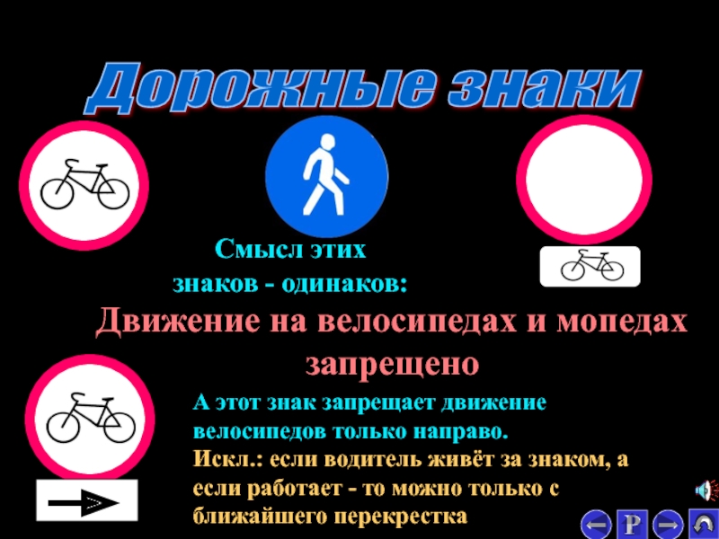 Верхний знак запрещает движение на велосипедах и мопедах, нижний разрешает только налево и в обратном направлении (разворот)
