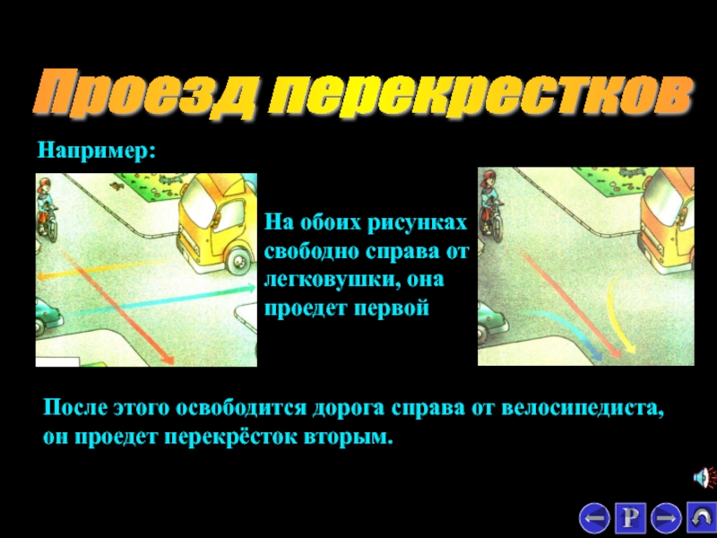 После этого освободится дорога справа от велосипедиста, он проедет перекрёсток вторым.