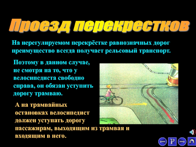 Поэтому в данном случае, не смотря на то, что у велосипедиста свободно справа, он обязан уступить дорогу трамваю.