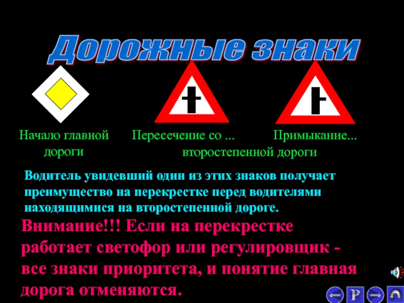 Внимание!!! Если на перекрестке работает светофор или регулировщик - все знаки приоритета, и понятие главная дорога отменяются.