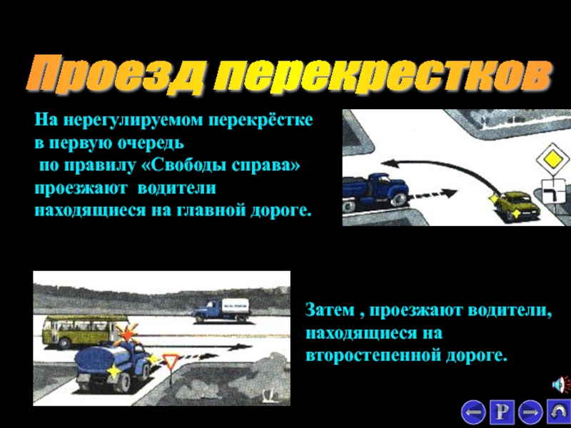 Затем , проезжают водители, находящиеся на второстепенной дороге.