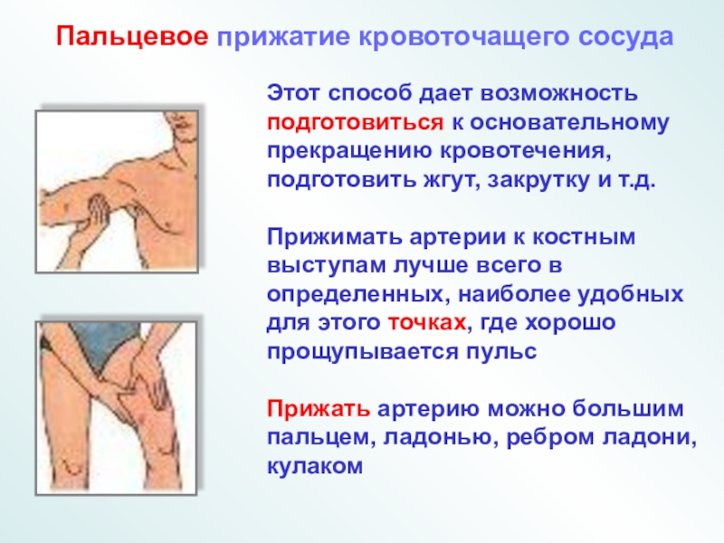 Пальцевое прижатие кровоточащего сосуда