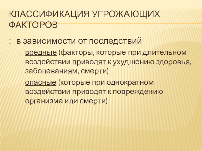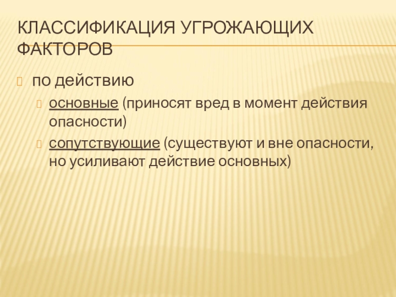 Слайд 26КЛАССИФИКАЦИЯ УГРОЖАЮЩИХ ФАКТОРОВ