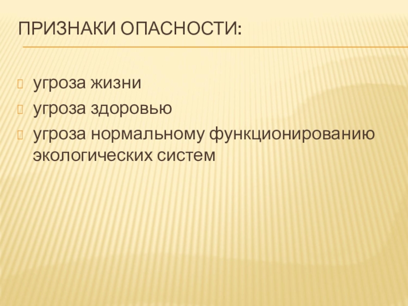 Слайд 9ПРИЗНАКИ ОПАСНОСТИ: