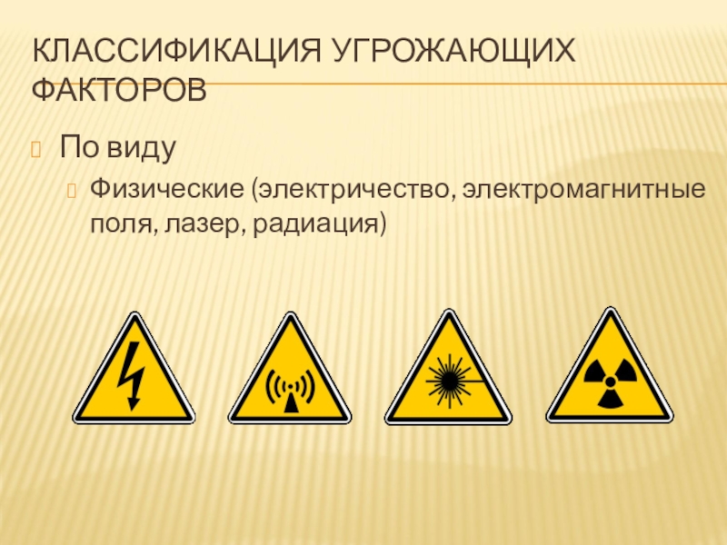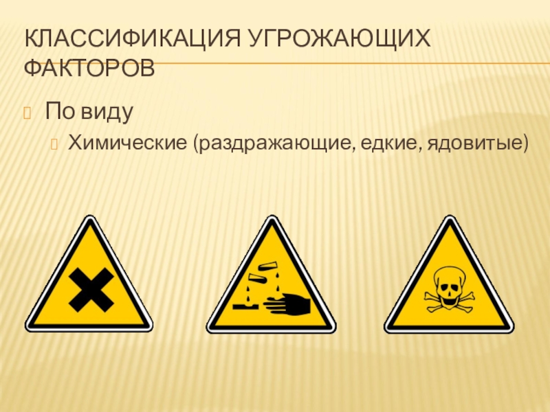 Слайд 19КЛАССИФИКАЦИЯ УГРОЖАЮЩИХ ФАКТОРОВ