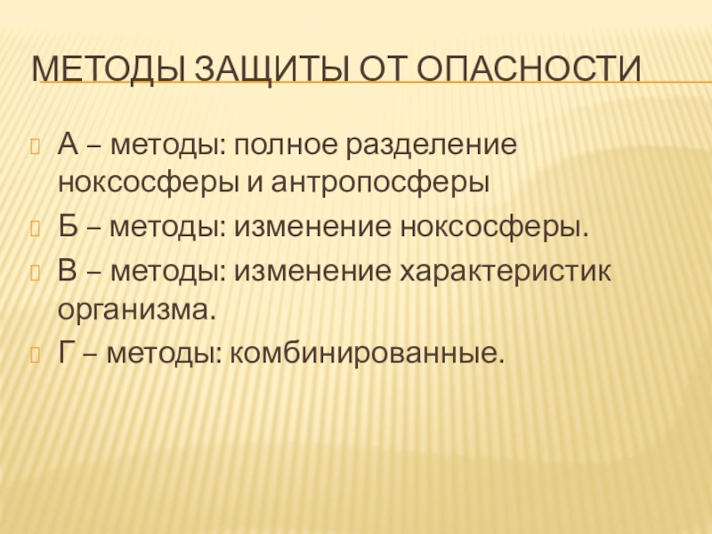 Слайд 32МЕТОДЫ ЗАЩИТЫ ОТ ОПАСНОСТИ