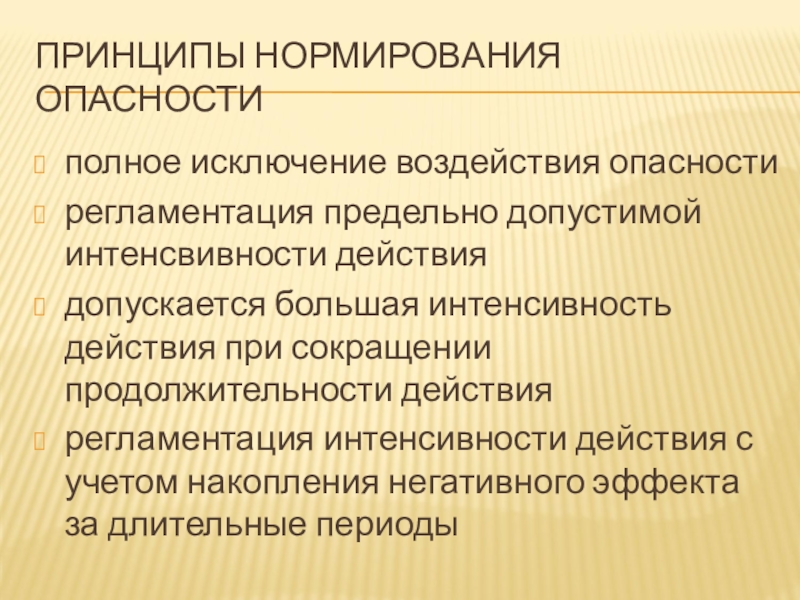 Слайд 27ПРИНЦИПЫ НОРМИРОВАНИЯ ОПАСНОСТИ