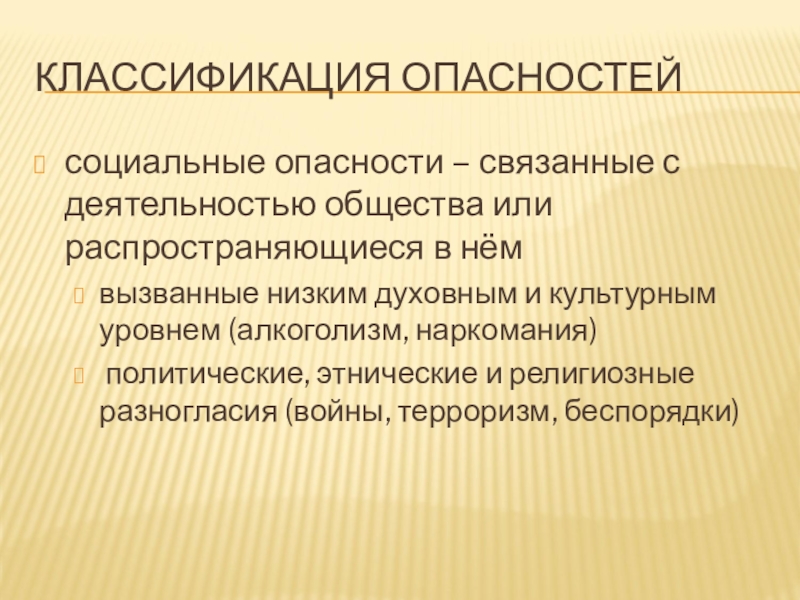 Слайд 10КЛАССИФИКАЦИЯ ОПАСНОСТЕЙ