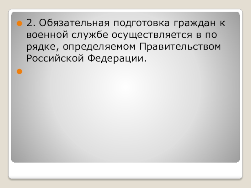 Слайд 402. Обязательная подготовка граждан к военной службе осуществляется в порядке, определяемом