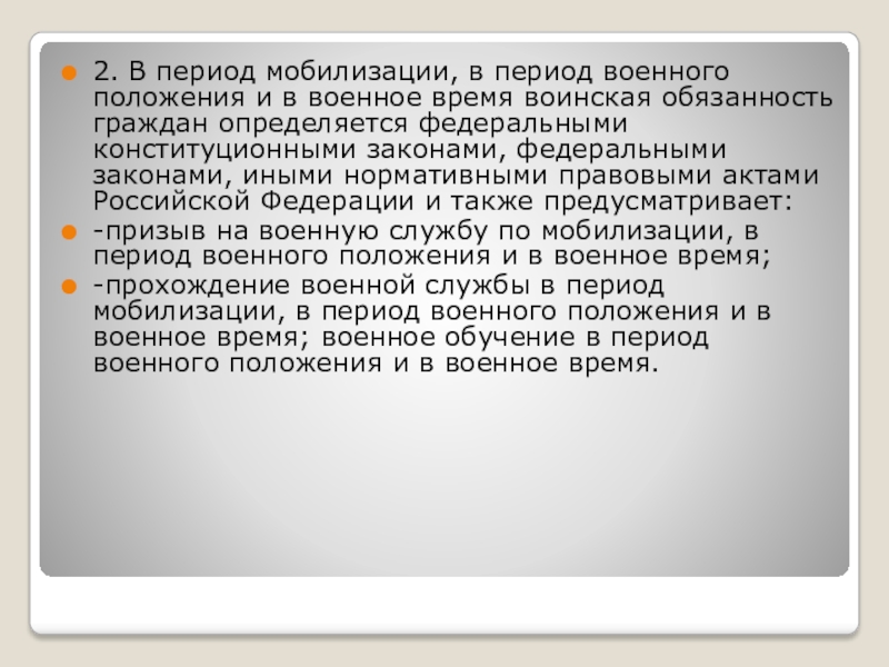 Слайд 62. В период мобилизации, в период военного положения и в военное