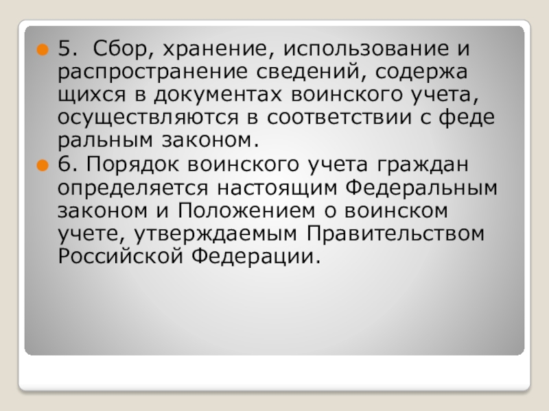 Слайд 195. Сбор, хранение, использование и распространение сведений, содержащихся в документах воинского