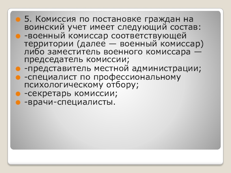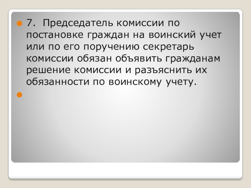 Слайд 297. Председатель комиссии по постановке граждан на воинский учет или по