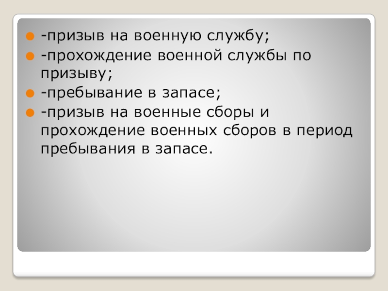 -призыв на военные сборы и прохождение военных сборов в период пребывания в запасе.
