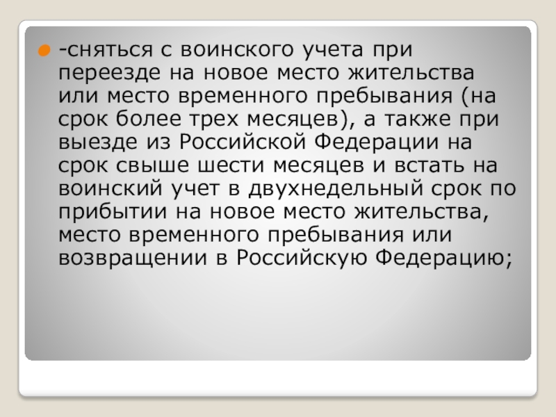 Слайд 33-сняться с воинского учета при переезде на новое место жительства или