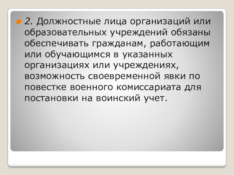 Слайд 242. Должностные лица организаций или образовательных учреждений обязаны обеспечивать гражданам, работающим