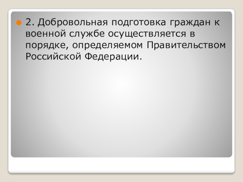 Слайд 442. Добровольная подготовка граждан к военной службе осуществляется в порядке, определяемом
