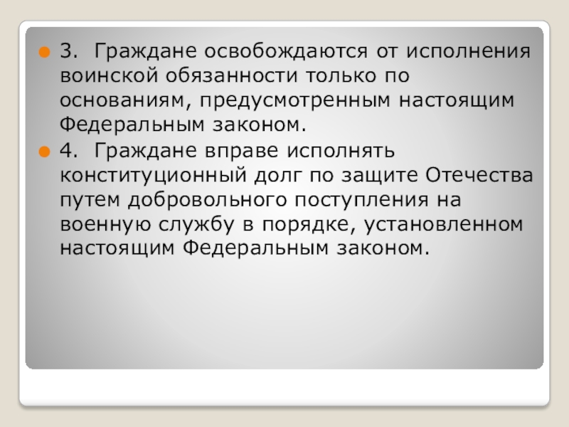 Слайд 73. Граждане освобождаются от исполнения воинской обязанности только по основаниям, предусмотренным