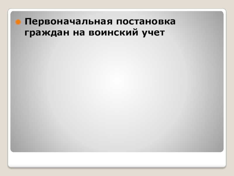 Слайд 22Первоначальная постановка граждан на воинский учет