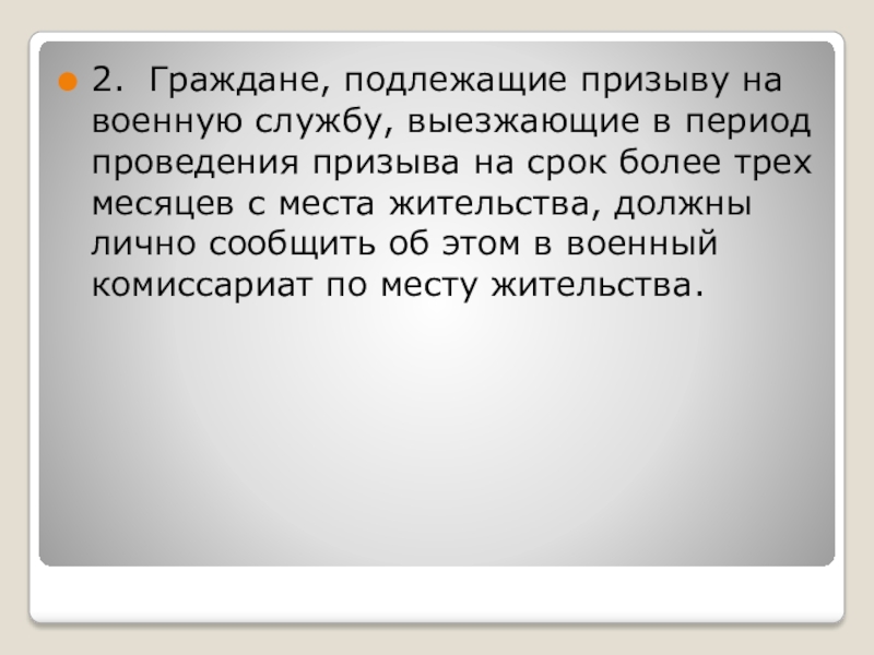 Слайд 352. Граждане, подлежащие призыву на военную службу, выезжающие в период проведения