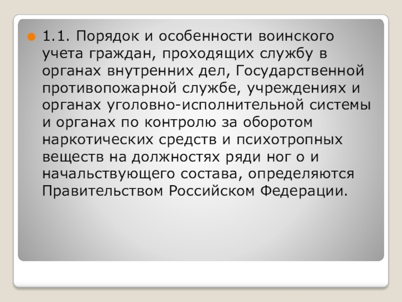 Слайд 131.1. Порядок и особенности воинского учета граждан, проходящих службу в органах