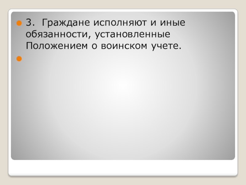 Слайд 363. Граждане исполняют и иные обязанности, установленные Положением о воинском учете.