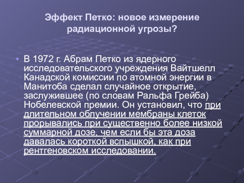 Слайд 10Эффект Петко: новое измерение радиационной угрозы?