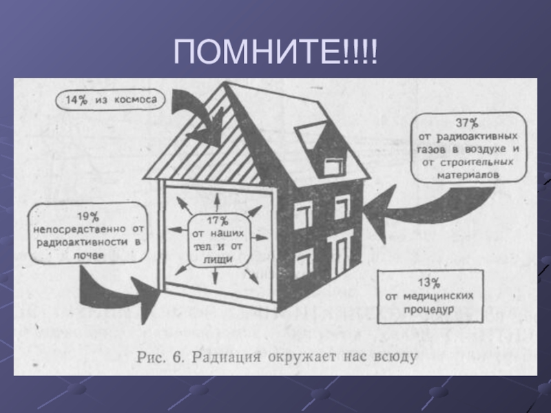 Однако опасность представляют вовсе не те источники радиации, о которых больше всего говорят. Радиация, связанная с развитием атомной энергетики, составляет лишь малую долю, существенную часть облучения население получает от естественных источников радиации: из космоса и от радиоактивных веществ, находящихся в земной коре, от применения рентгеновских лучей в медицине, во время полета на самолете, от каменного угля, сжигаемого в бесчисленном количестве различными котельными и т.д.