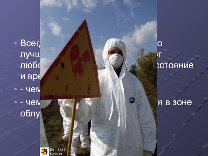 Всегда следует иметь в виду, что лучшей защитой от радиации, от